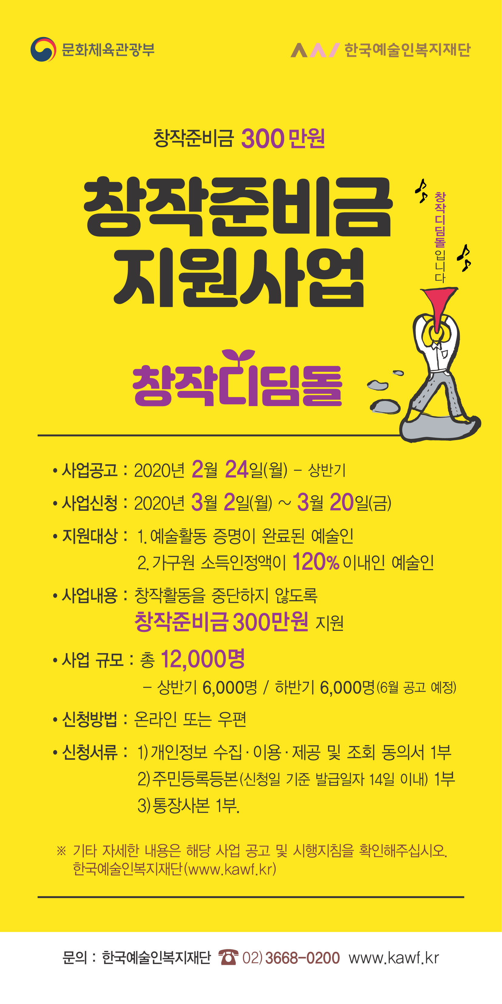 [알림] 2020년도 『창작준비금지원사업-창작디딤돌』상반기 사업 안내